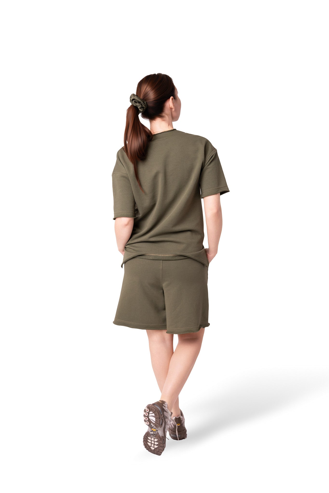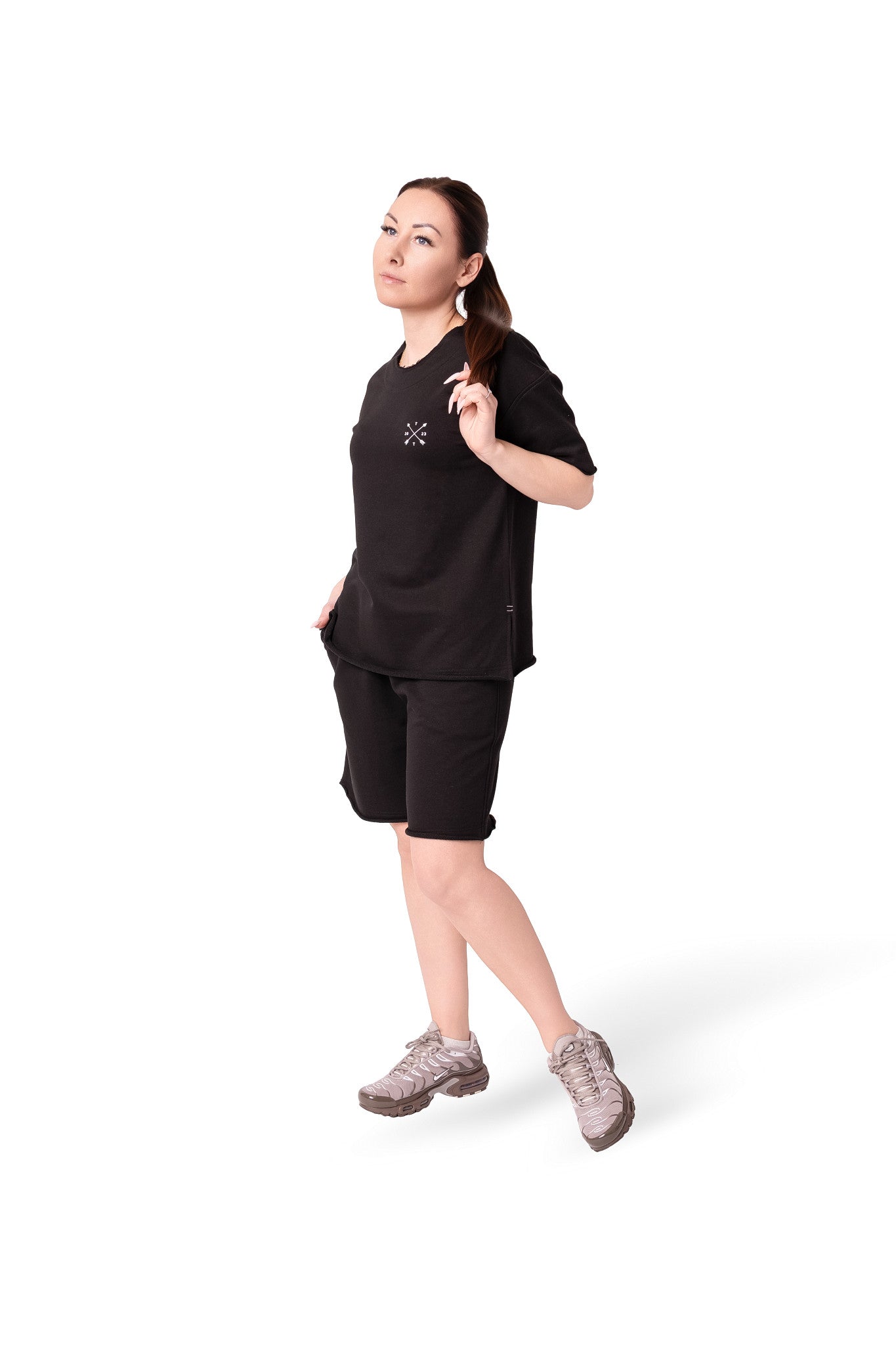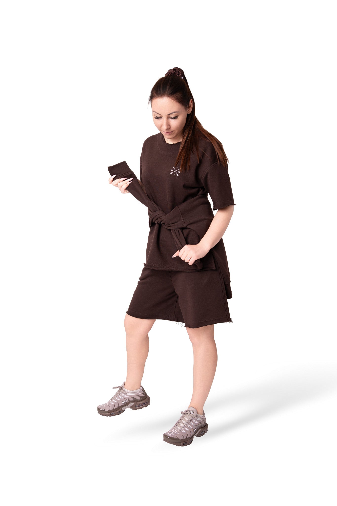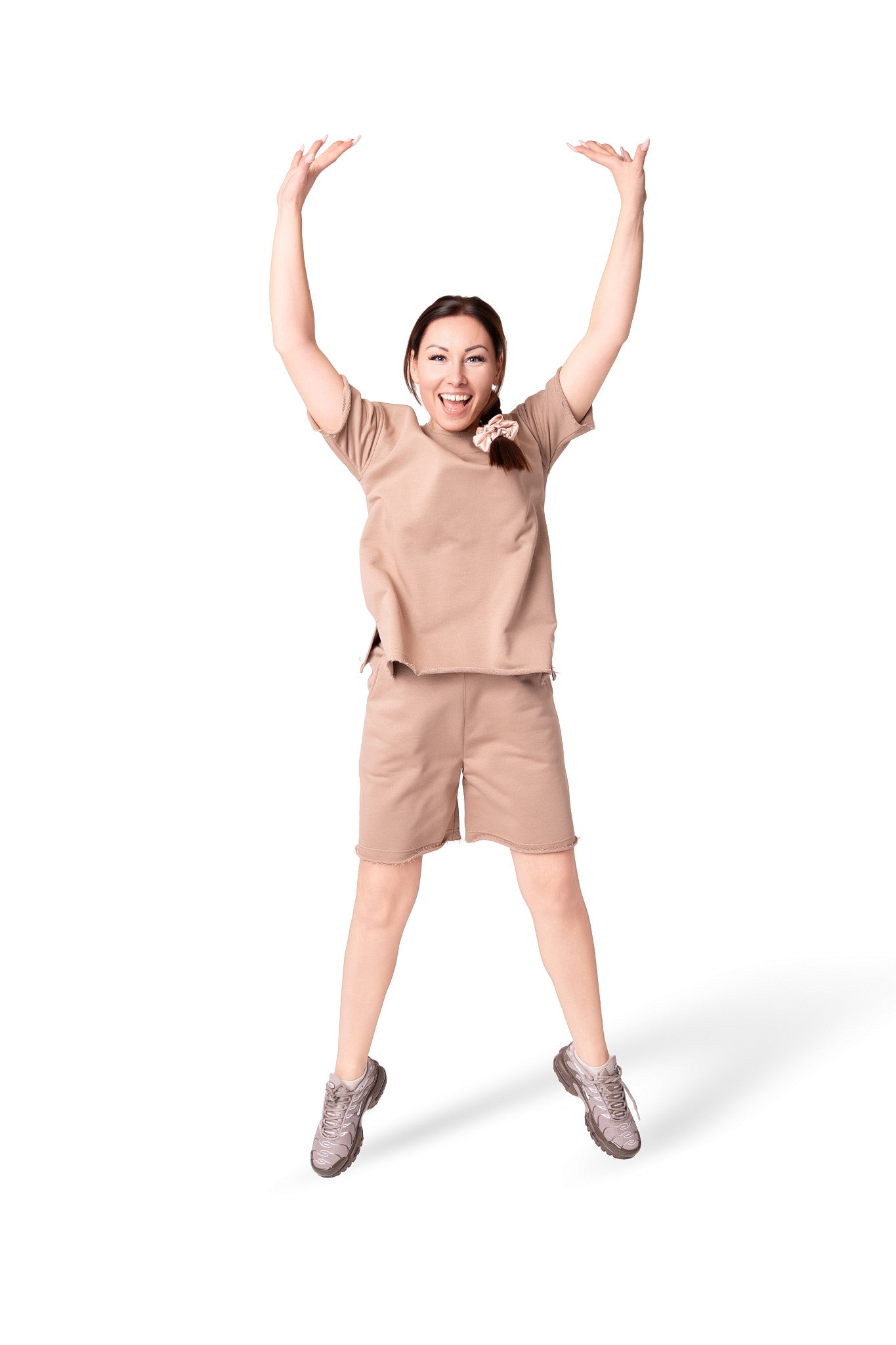 Kostiumėlis pasiūtas iš Penye trisiūlio trikotažo.Penye,tai aukštos kokybės audinys,gaunamas iš ilgų medvilnės pluoštų,kuriems atliekamas spec.apdorojimas-šlifavimas.Jo dėka iš pluoštų pašalinamas lengvas pūkas.Todėl šis trikotažas turi šiek tiek blizgesio,puikiai laiko formą,praktikai nesiglamžo ir yra anti-pilling(nesipumpuruoja).Jis Jums leis jaustis patogiai ištisus metus tiek mieste,tiek namuose.
