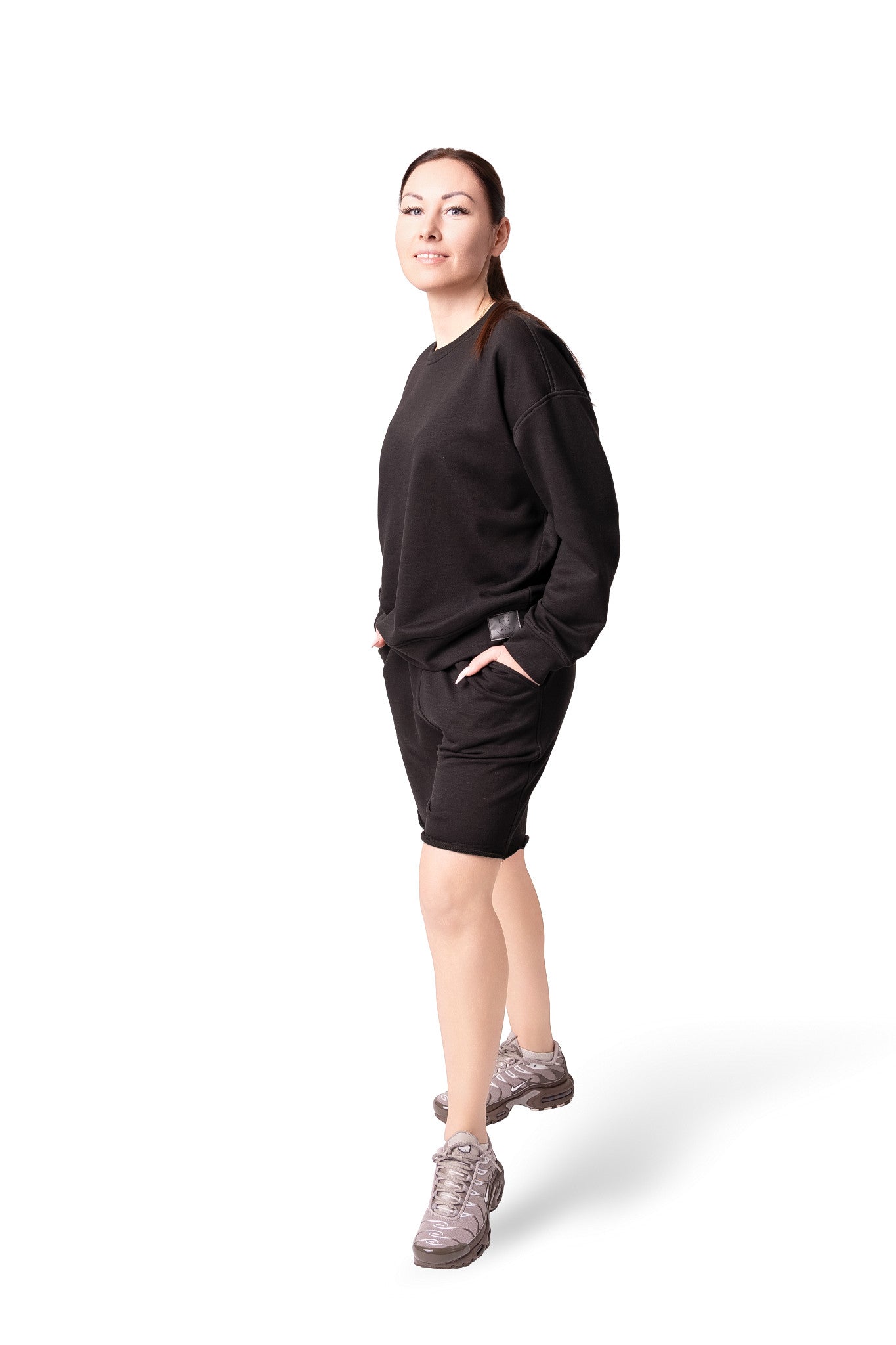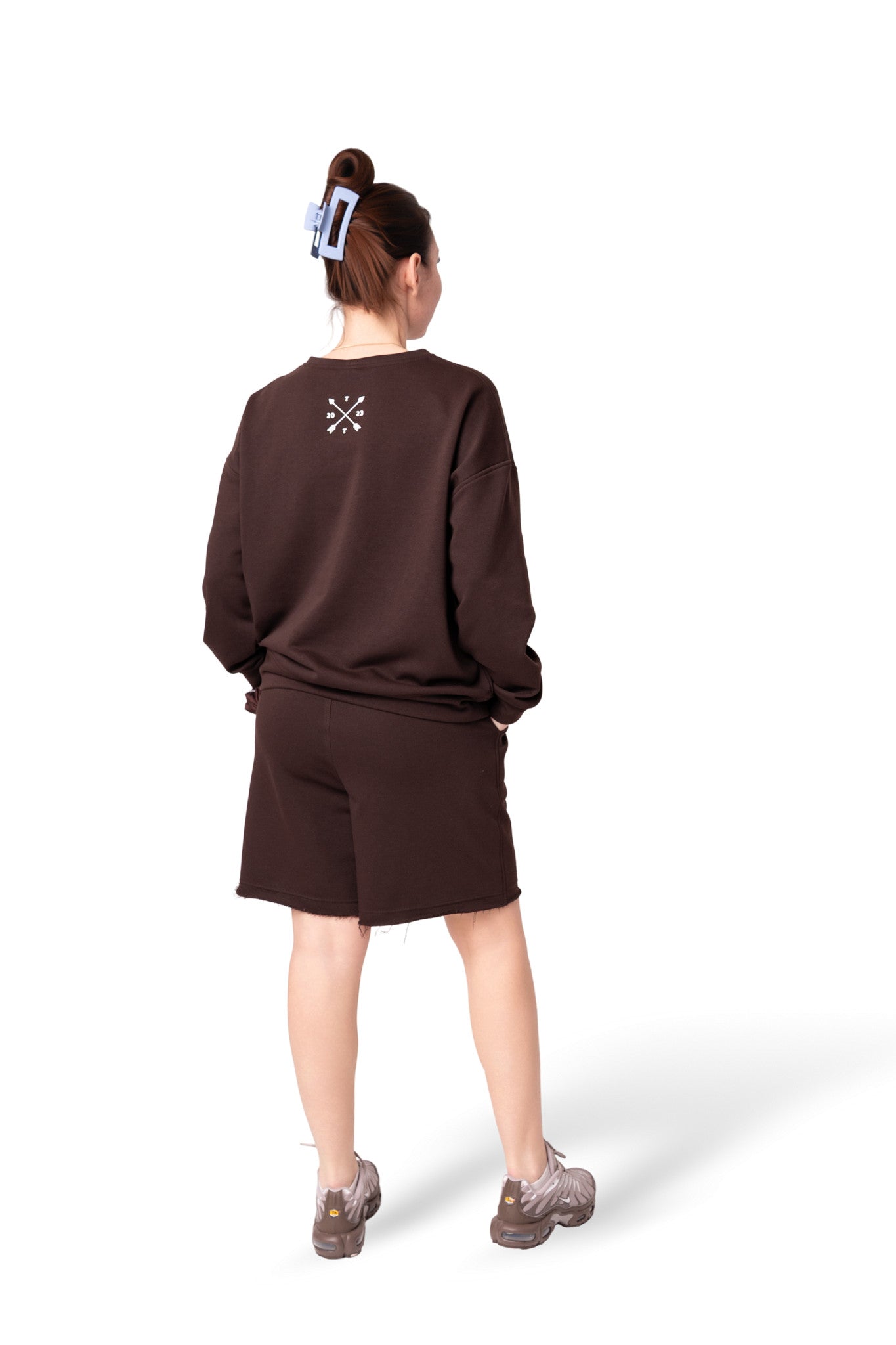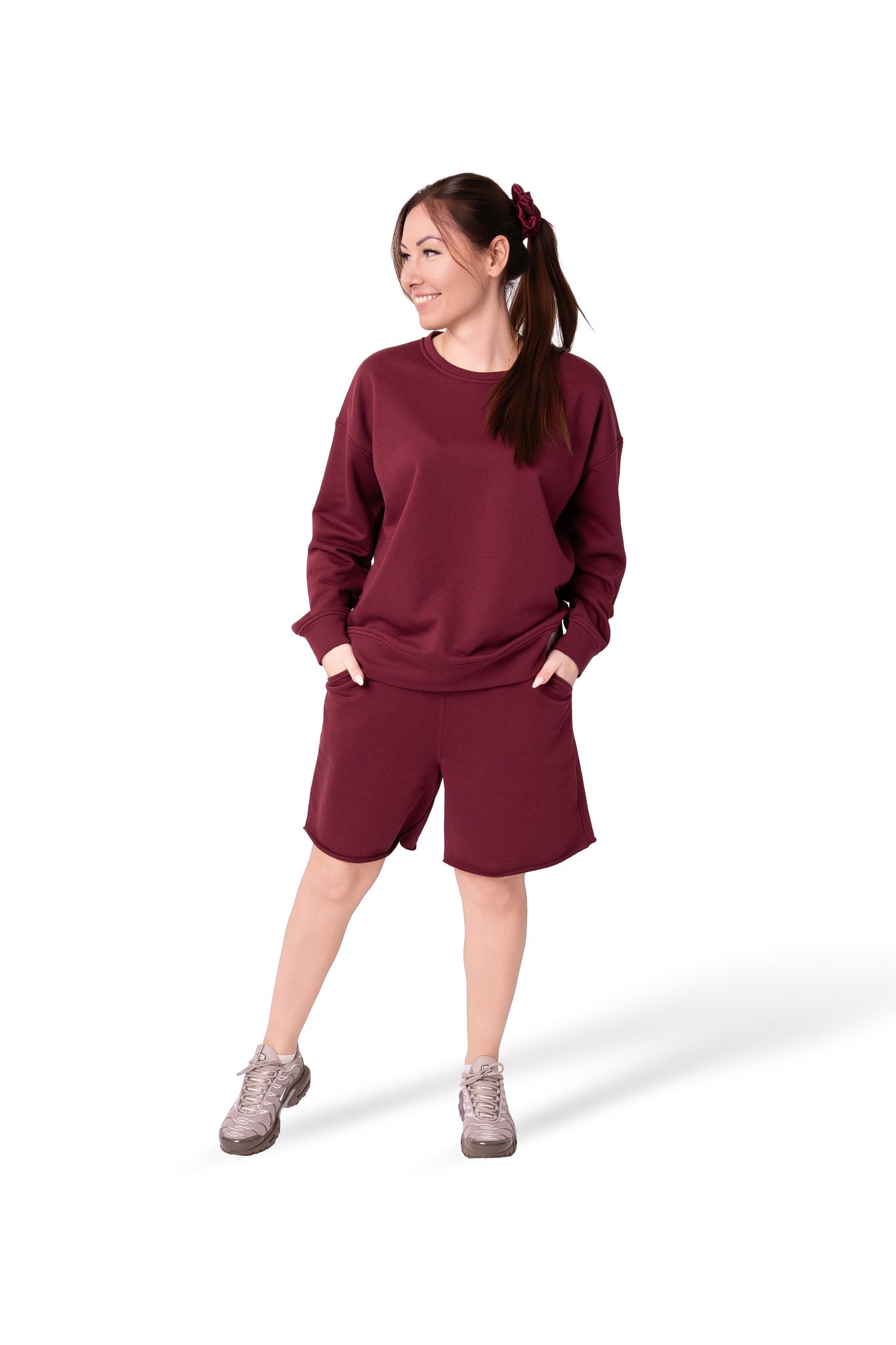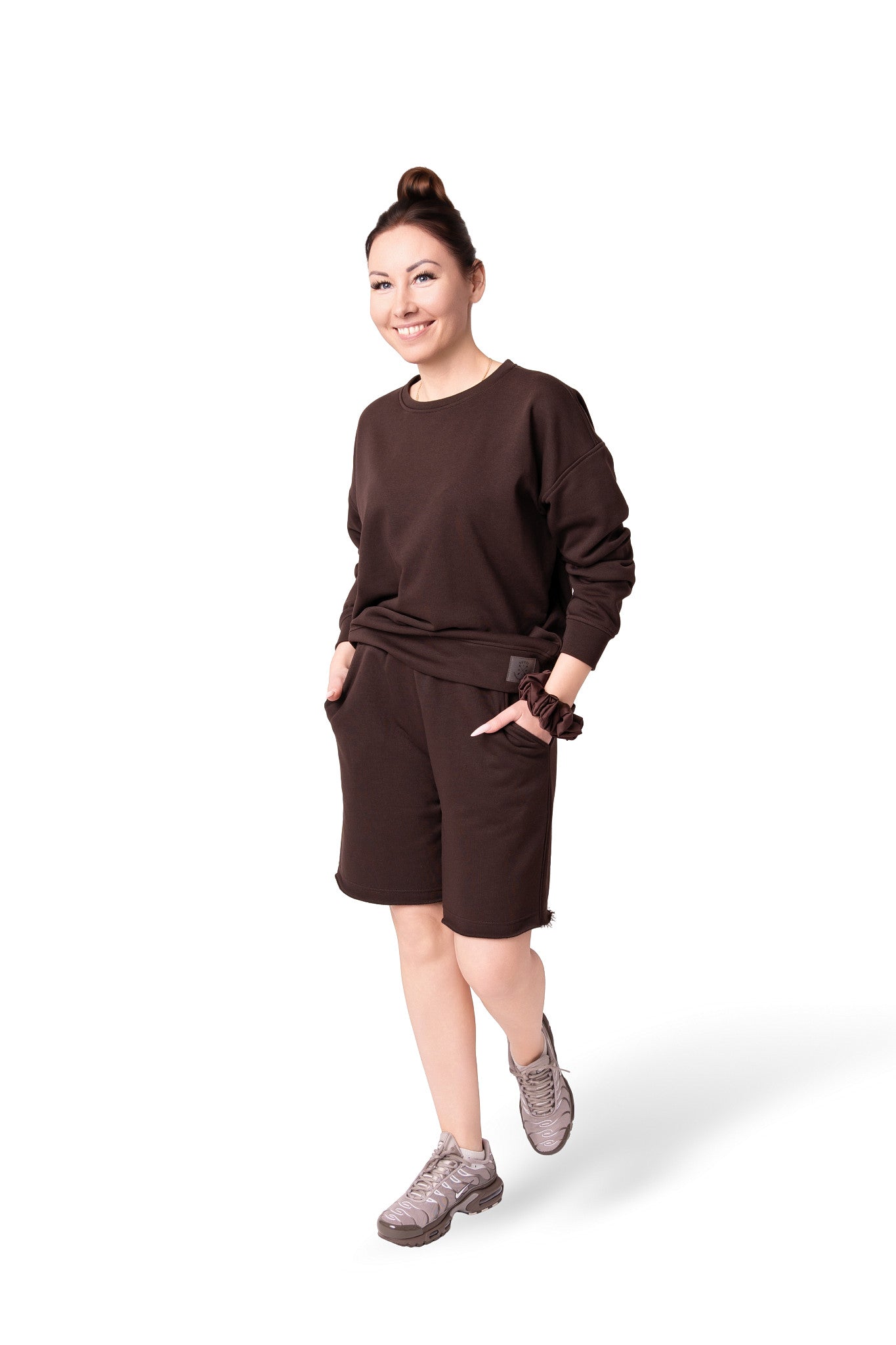 Kostiumėlis pasiūtas iš Penye trisiūlio trikotažo.Penye,tai aukštos kokybės audinys,gaunamas iš ilgų medvilnės pluoštų,kuriems atliekamas spec.apdorojimas-šlifavimas.Jo dėka iš pluoštų pašalinamas lengvas pūkas.Todėl šis trikotažas turi šiek tiek blizgesio,puikiai laiko formą,praktikai nesiglamžo ir yra anti-pilling(nesipumpuruoja).Jis Jums leis jaustis patogiai ištisus metus tiek mieste,tiek namuose.