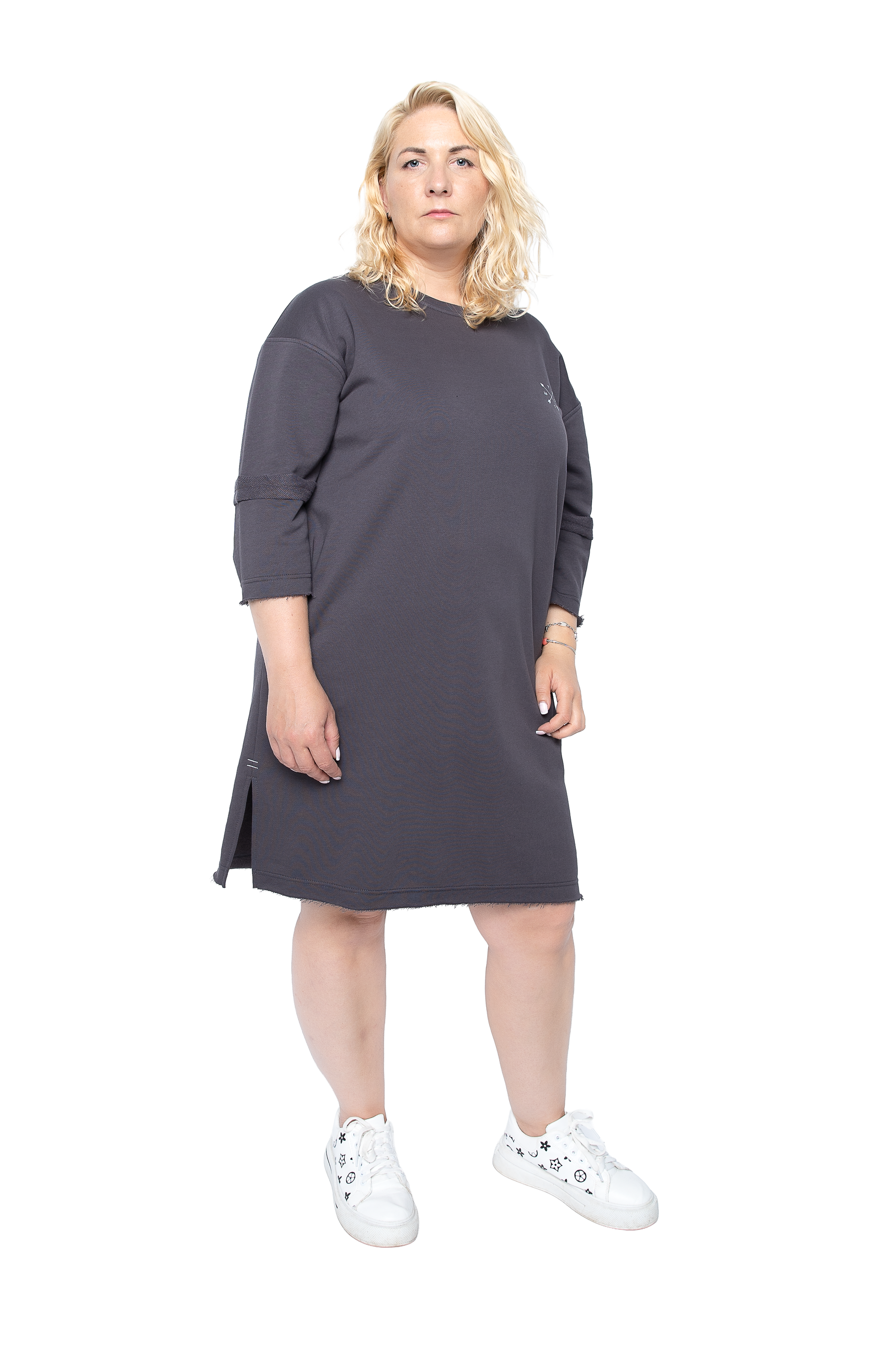 Suknelė pasiūta iš Penye trisiūlio trikotažo.Penye,tai aukštos kokybės audinys,gaunamas iš ilgų medvilnės pluoštų,kuriems atliekamas spec.apdorojimas-šlifavimas.Jo dėka iš pluoštų pašalinamas lengvas pūkas.Todėl šis trikotažas turi šiek tiek blizgesio,puikiai laiko formą,praktikai nesiglamžo ir yra anti-pilling(nesipumpuruoja).Jis Jums leis jaustis patogiai ištisus metus tiek mieste,tiek namuose.